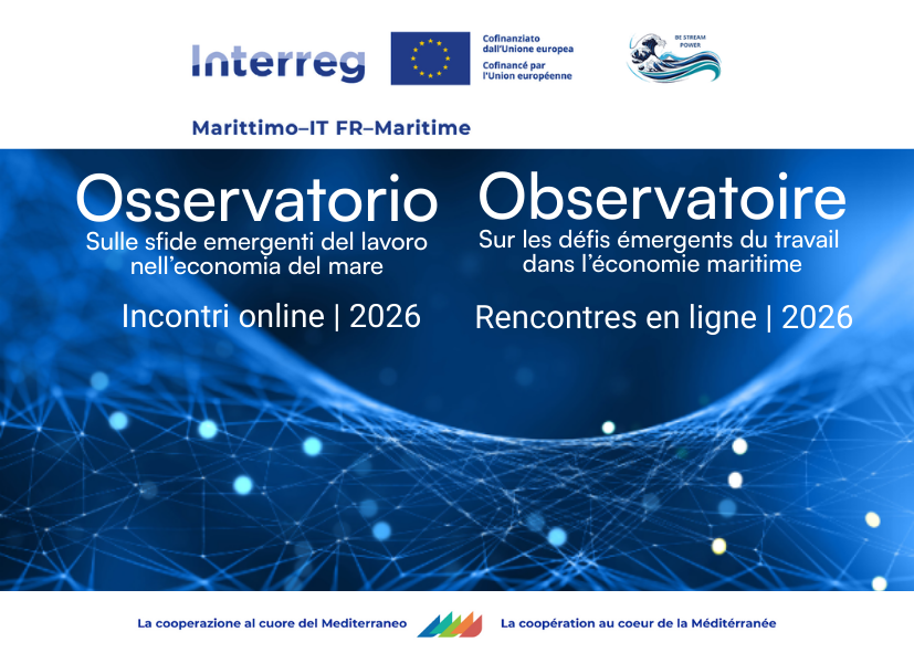 L'Observatoire, créé dans le cadre du projet Interreg BE STREAM POWER, avec la Province de Livourne comme chef de file et la gestion de Provincia di Livorno Sviluppo, est un espace de discussion en ligne qui rassemble des institutions, des entreprises, des opérateurs du monde du travail, des organismes de formation et de recherche des territoires partenaires afin de relever les défis émergents du marché du travail maritime.