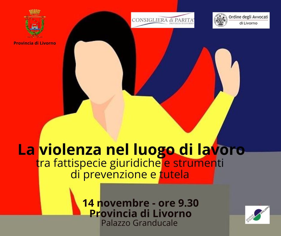 Nel mese dedicato al contrasto alla violenza sulle donne, la Provincia, in collaborazione con la consigliera di parità e il patrocinio dell’Ordine degli avvocati di Livorno, promuove un incontro sul tema della violenza sui luoghi di lavoro.